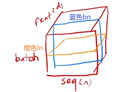 上图是李沐老师所讲的ln与bn的差异,需要往LayerNorm里传入二维张量。若传入数字,则仅对一个词的d_model作归一化,如下图所示: