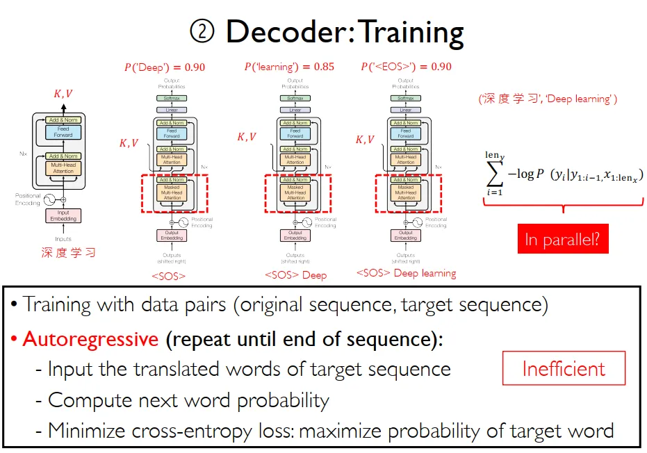 解决训练过程中的问题: 实际上让训练过程可以并行计算,即一次性能训练一整个句子。