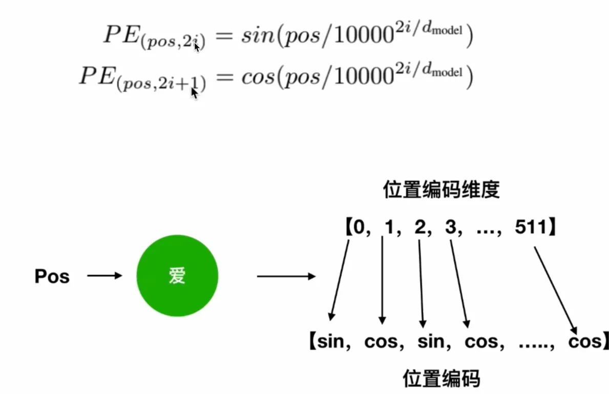 在embedding和attention之间加一个向量,pos代表位置,i代表维度,i从0开始